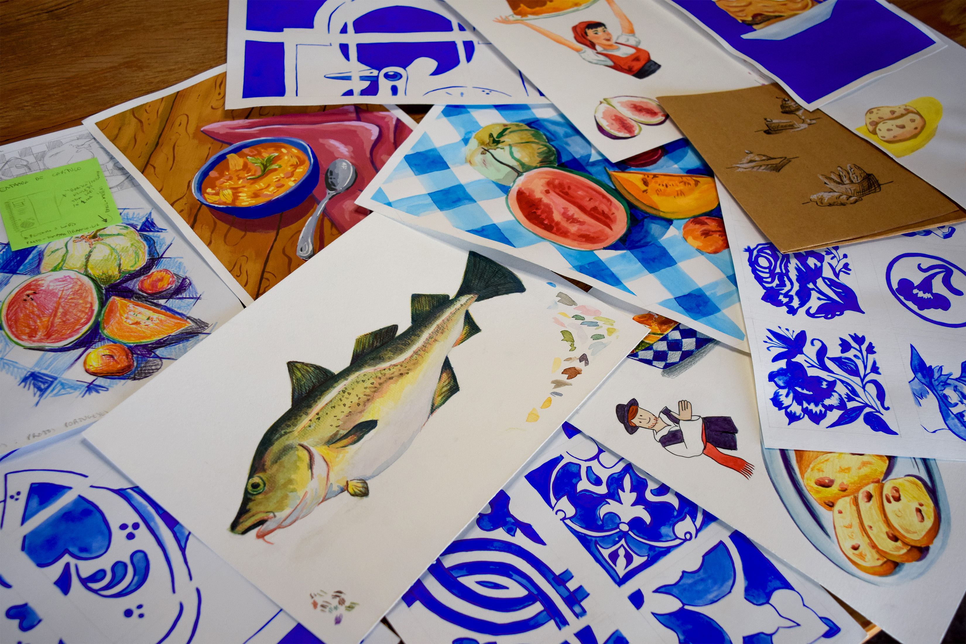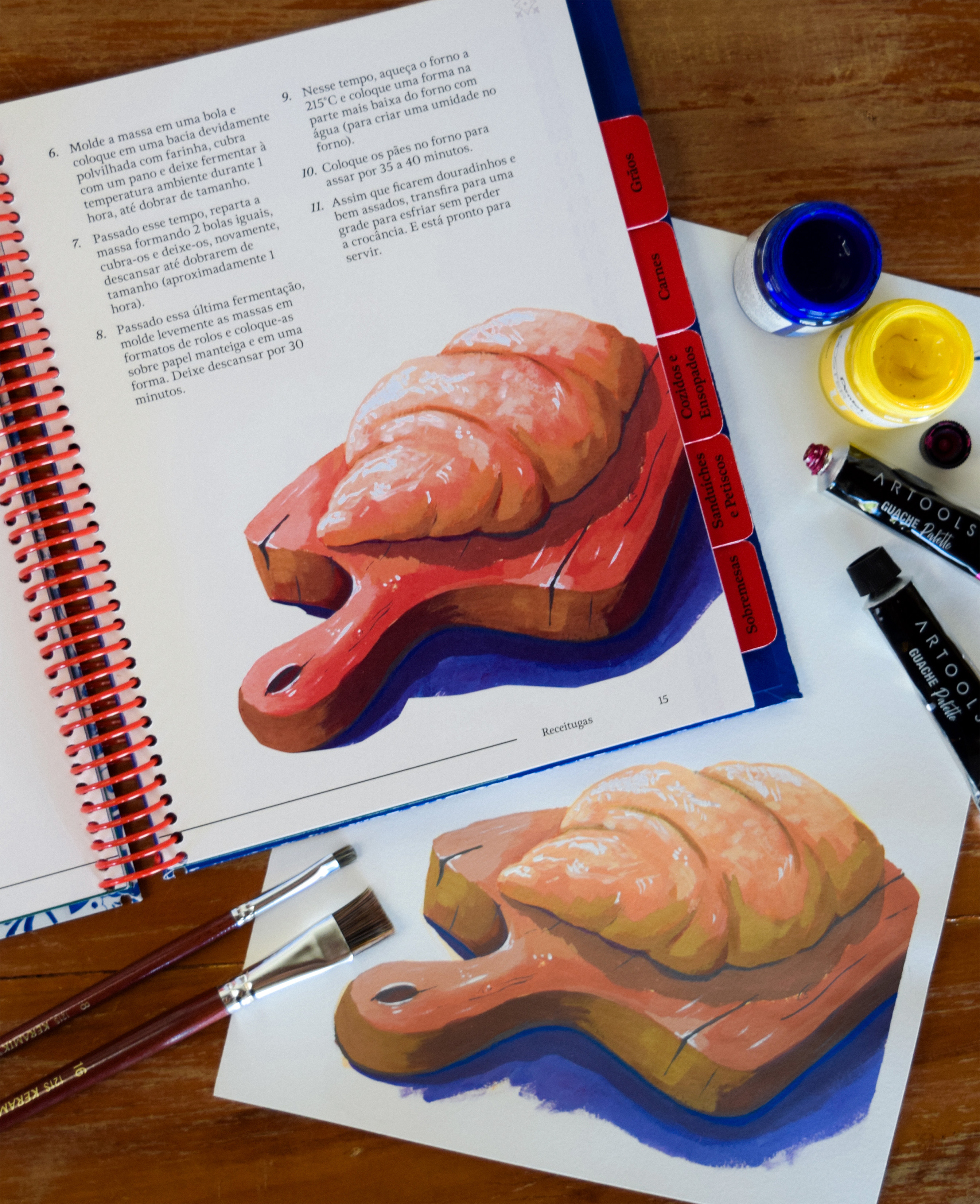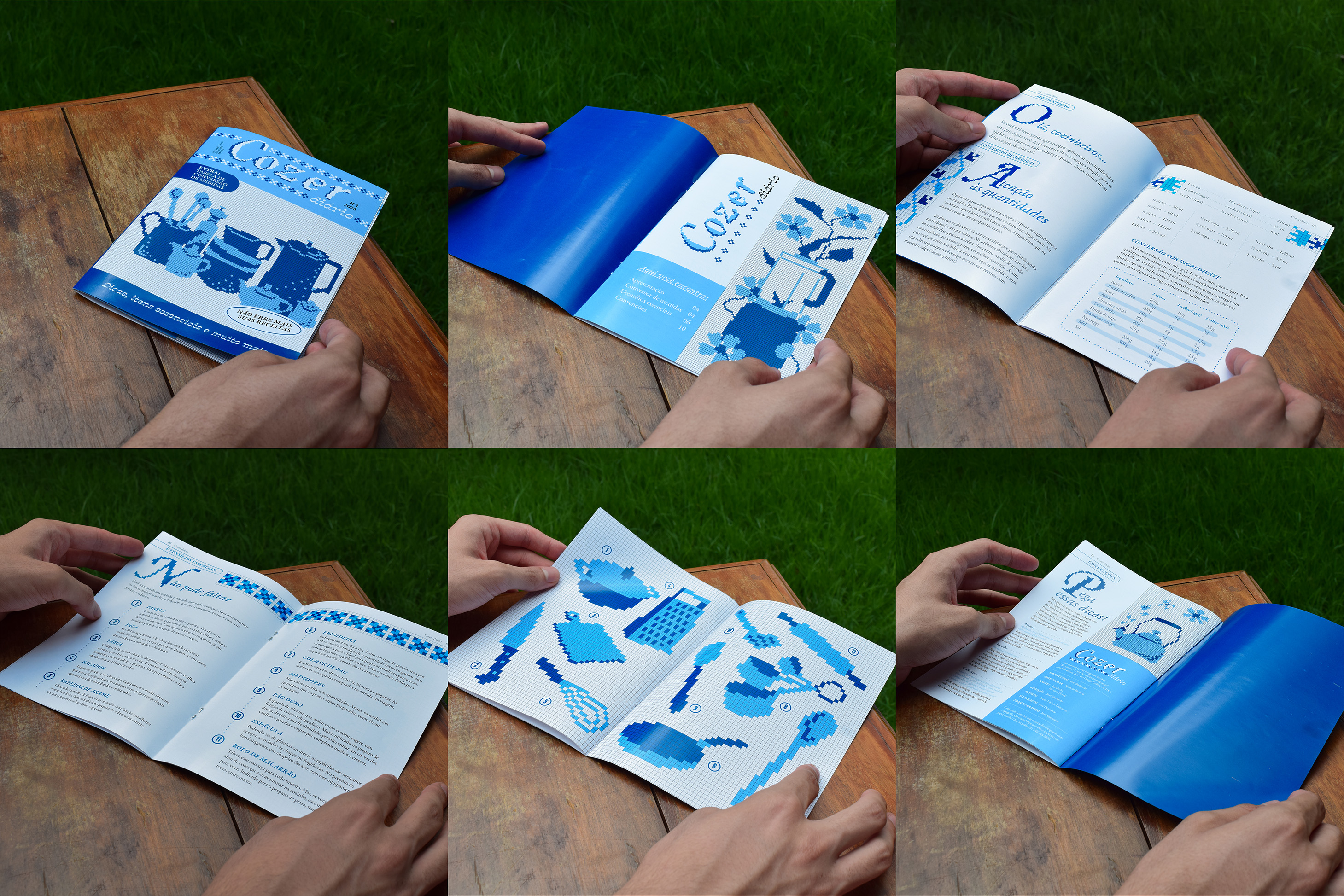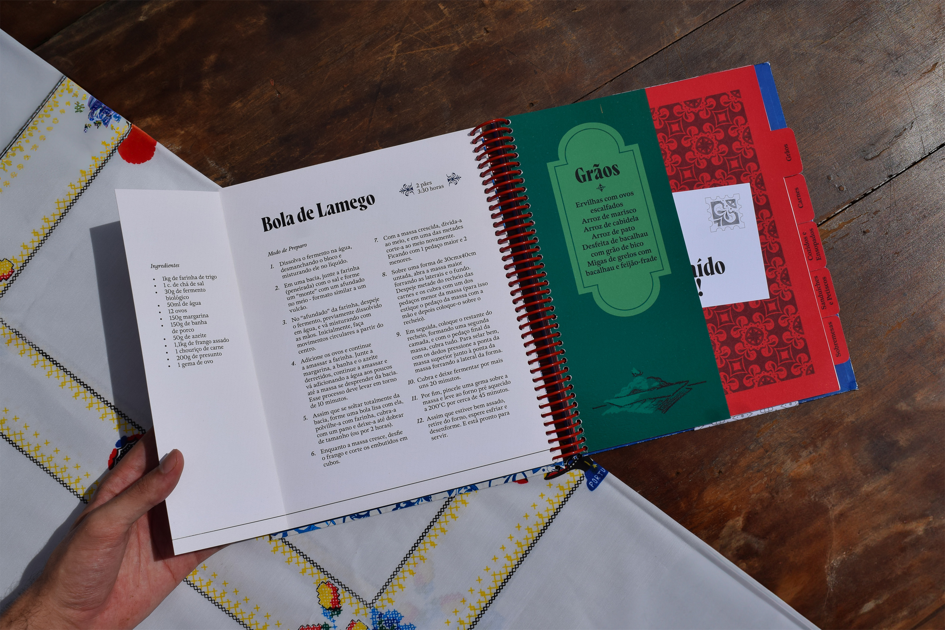 Votar neste projetoReceitugas é um livro de receitas portuguesas que incentiva o contato entre avós migrantes e netos, usando a cozinha como espaço de troca cultural. Mistura o moderno ao vintage com linguagem afetiva e instrucional, criando um ambiente encantador e familiar. Inspirado em cadernos de receitas, mescla diferentes mídias (fotos, aquarela, guache e papéis escaneados) propondo um diário/arquivo de receitas. As páginas trazem anotações manuais, dicas e substituições para iniciantes, reforçando seu caráter vivo e colaborativo. O projeto explora elementos da cultura portuguesa e da oralidade, como ditos populares na abertura dos capítulos. Acompanha um encarte em formato de revista de ponto cruz, que introduz o universo culinário de forma lúdica e resgata a prática de colecionar receitas de revistas