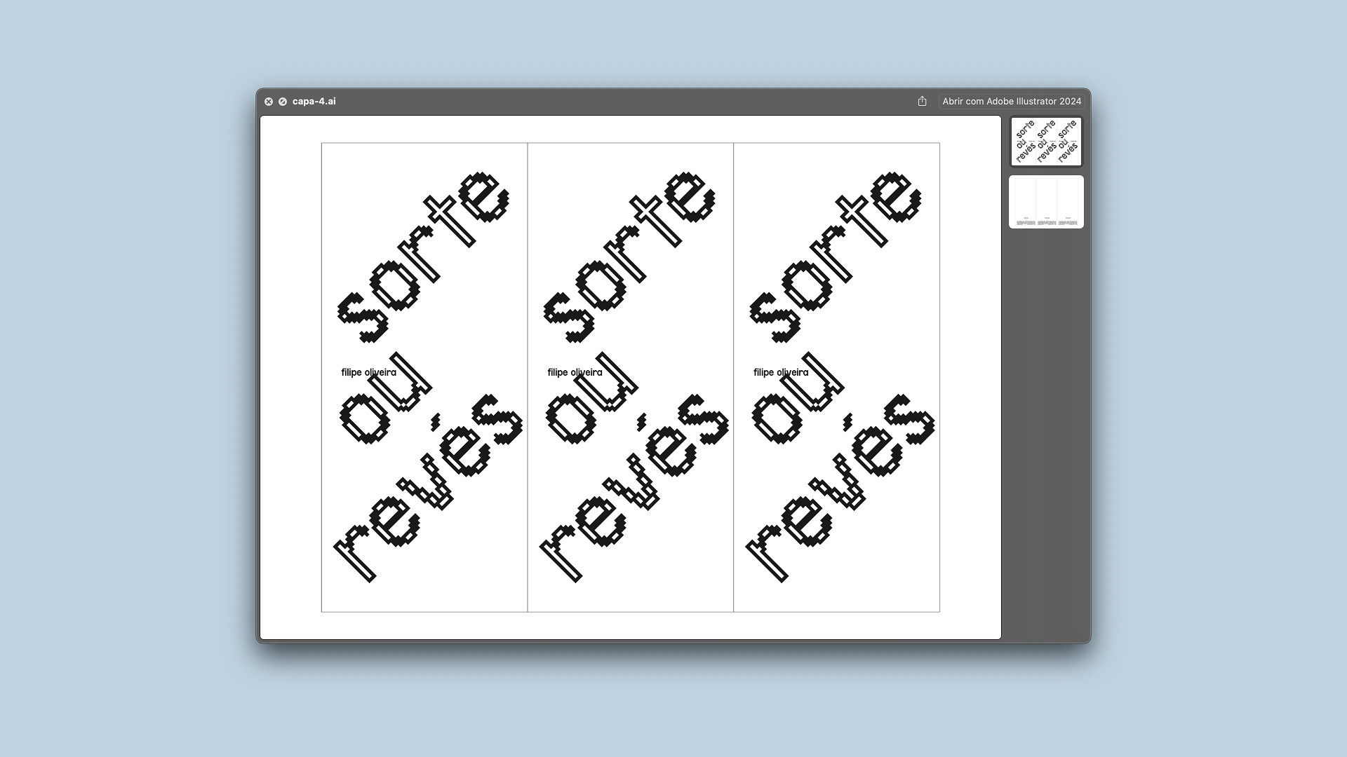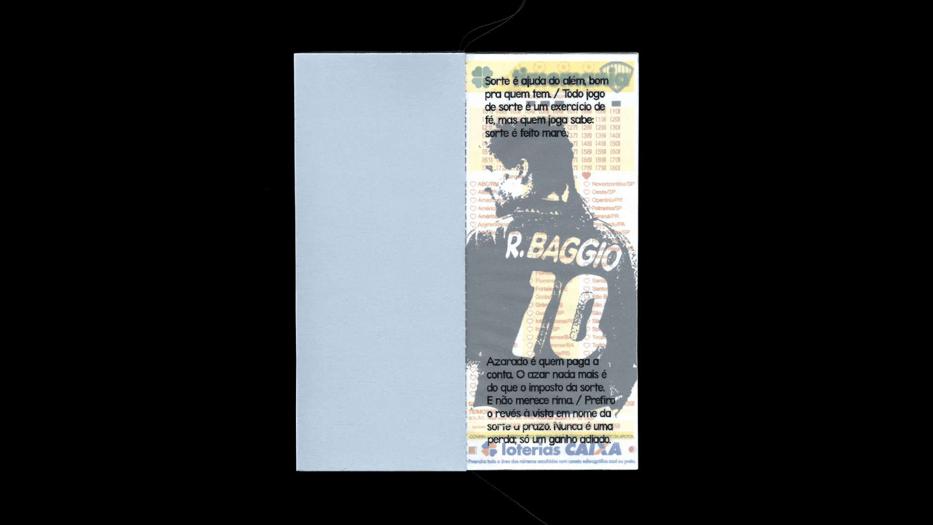 Votar neste projetoComposto de forma autoral e produzido de forma artesanal, Sorte ou Revés é uma publicação experimental em edição limitada: um microlote com tiragem de apenas 25 unidades assinadas e numeradas. O conceito explora o tema da sorte e do acaso a partir de códigos gráficos ligados ao universo dos jogos de aposta, criando um objeto editorial que funciona como um laboratório visual apoiado por um texto livre e pessoal sobre esse universo.