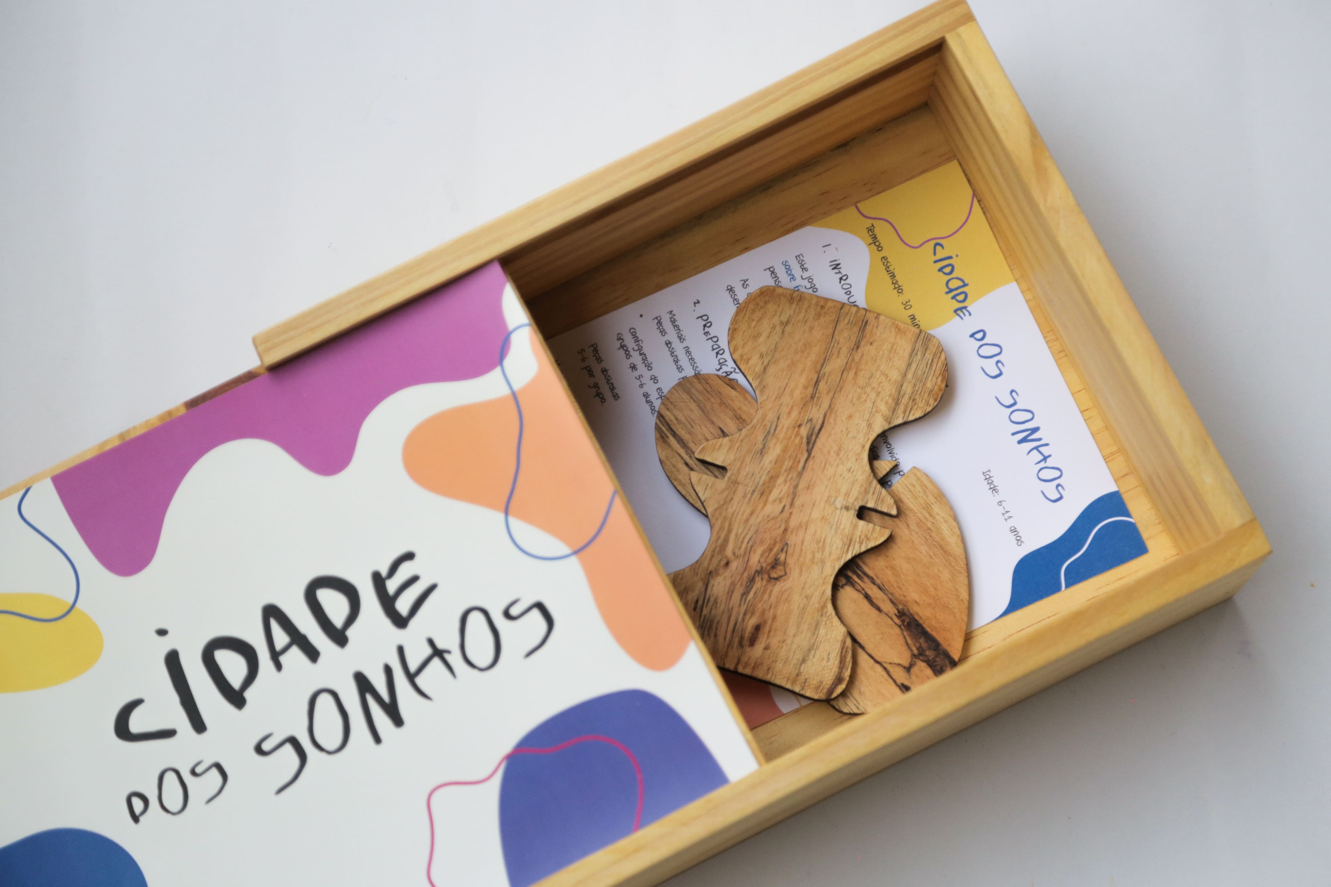 Votar neste projetoCidade dos Sonhos é um jogo educativo infantil que estimula o pensamento sobre Futuros: imaginação e criação de novas formas de existência. As crianças não apenas jogam, mas criam narrativas coletivas sobre seus territórios urbanos ideais. Com uma dinâmica de jogo não estruturada e peças de inúmeros formatos e linguagem abstrata e produzido com madeira de poda (tida com resíduo urbano), foi desenvolvido para o contexto da educação pública brasileira. O jogo convida crianças entre 6 e 10 anos de idade a repensarem a cidade onde vivem e imaginarem novas perpectivas sobre o seu entorno de forma crítica e propositiva. Seu maior impacto está em colocá-las como protagonistas da construção de futuros, para que sejam cidadãs ativas, capazes de imaginar e reivindicar por cidades mais justas.