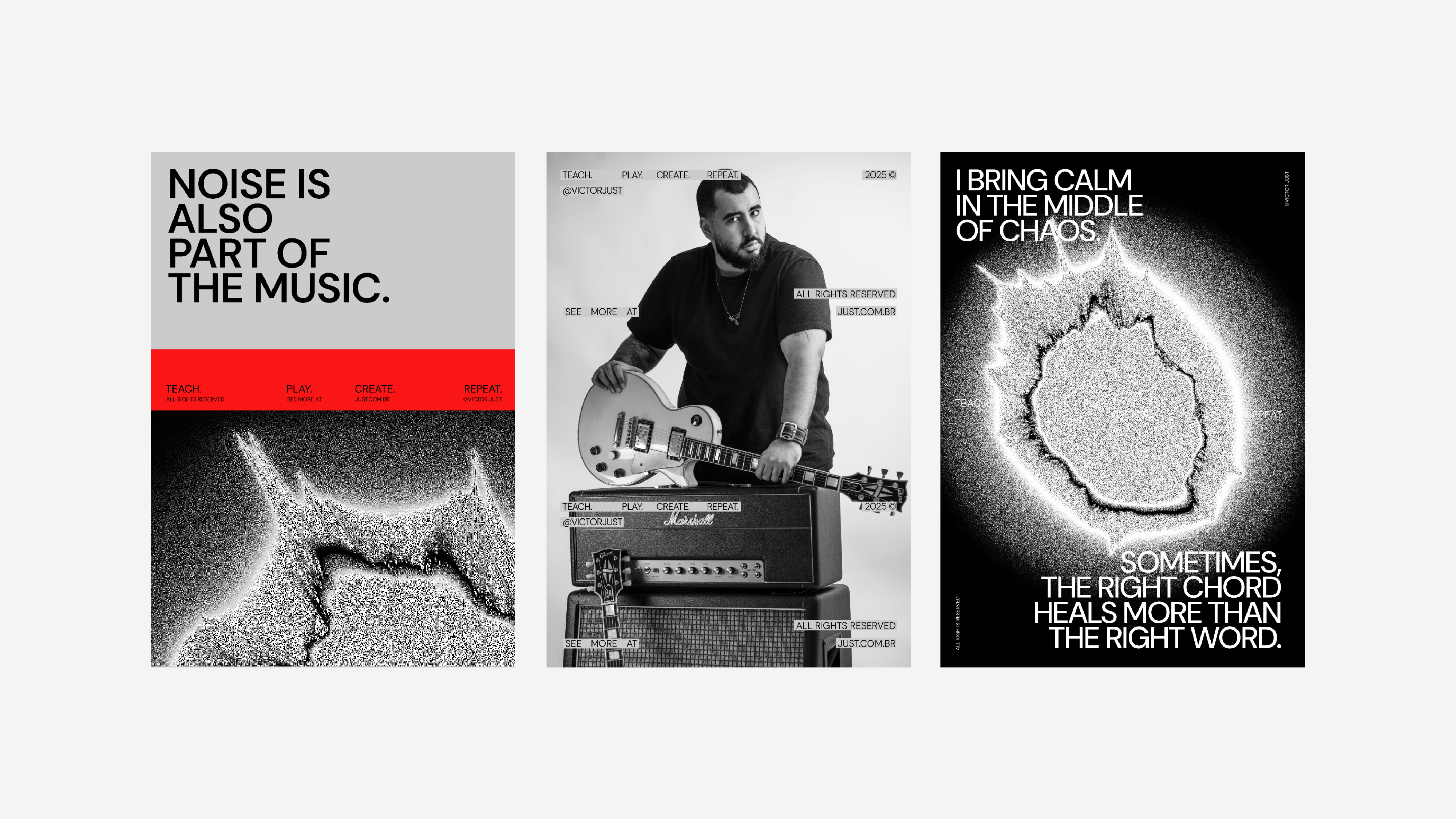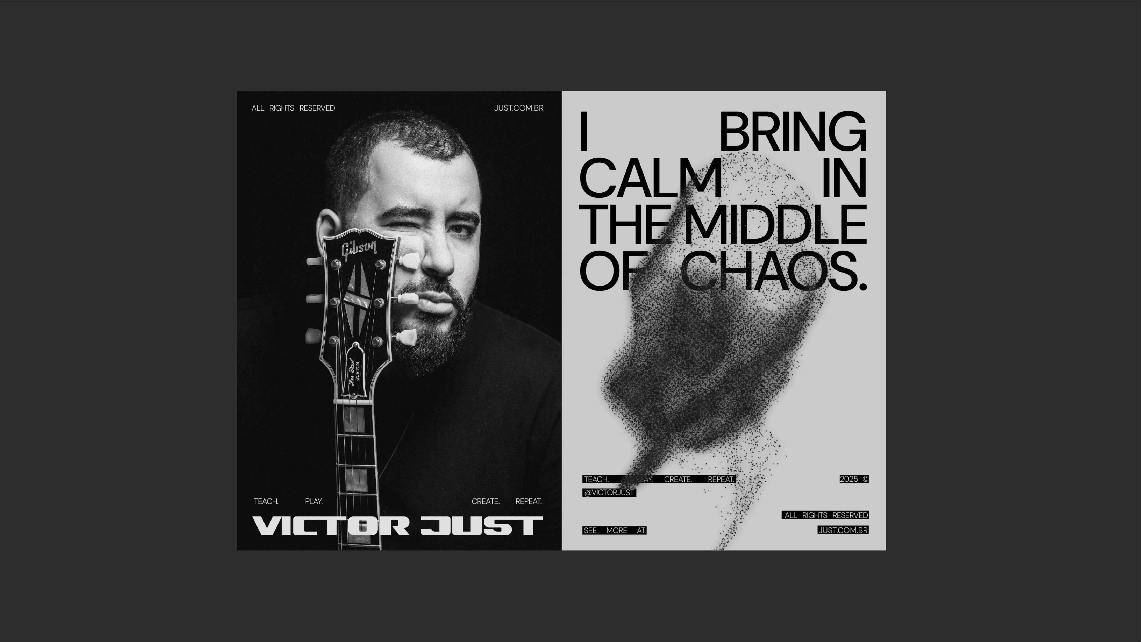 Votar neste projetoVictor Just é músico, cantor e compositor que decidiu transformar sua trajetória em uma nova fase artística. Após mais de dez anos como professor de música, passou a focar na própria arte, buscando uma identidade mais profissional e clara, sem perder sua essência. A identidade visual nasce para organizar esse momento, refletindo exatamente quem ele é: um artista técnico e sensível, que fala o que pensa e toca o que sente, sempre com firmeza e verdade.