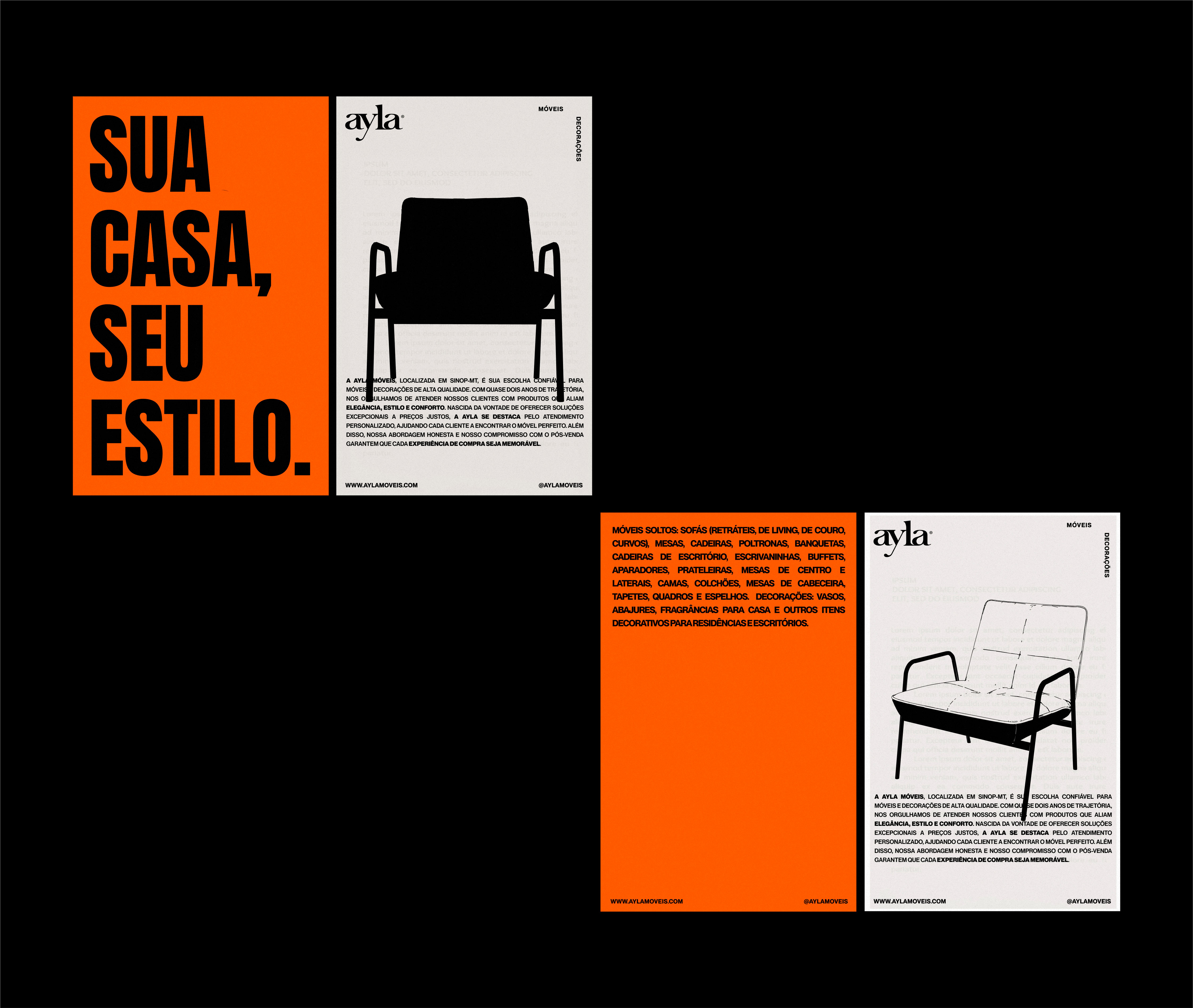 Votar neste projetoDesenvolvemos a identidade visual da Ayla Furniture para traduzir sua essência em forma, cor e tipografia. O sistema une minimalismo e presença: logotipo elegante, paleta com laranja vibrante, preto e neutros, e grafismos baseados em silhuetas de mobiliário. O conjunto valoriza exclusividade, funcionalidade e curadoria, entregando linguagem clara, atemporal e memorável. Aplicações em catálogo, site, redes e loja consolidam a credibilidade da marca e ampliam seu reconhecimento.