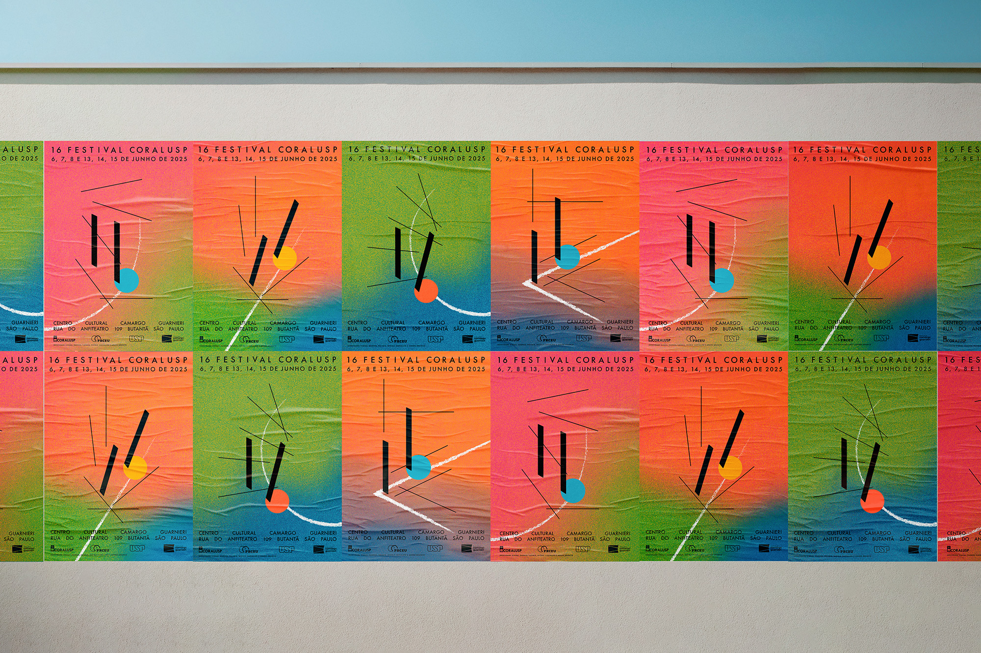 Votar neste projetoPara a 16º edição do FESTIVAL CORALUSP construímos uma identidade visual fluida e dinâmica, colorida e vibrante, misturando gradientes e texturas simbolizando o encontro dos diversos grupos de coral, estilos musicais, e toda a diversidade que o Festival reúne, foram criadas quatro variações do logo, um "16" formado pela desconstrução de uma pauta musical, além de diversos grafismos conectando todos em um único lugar para celebrar a música.