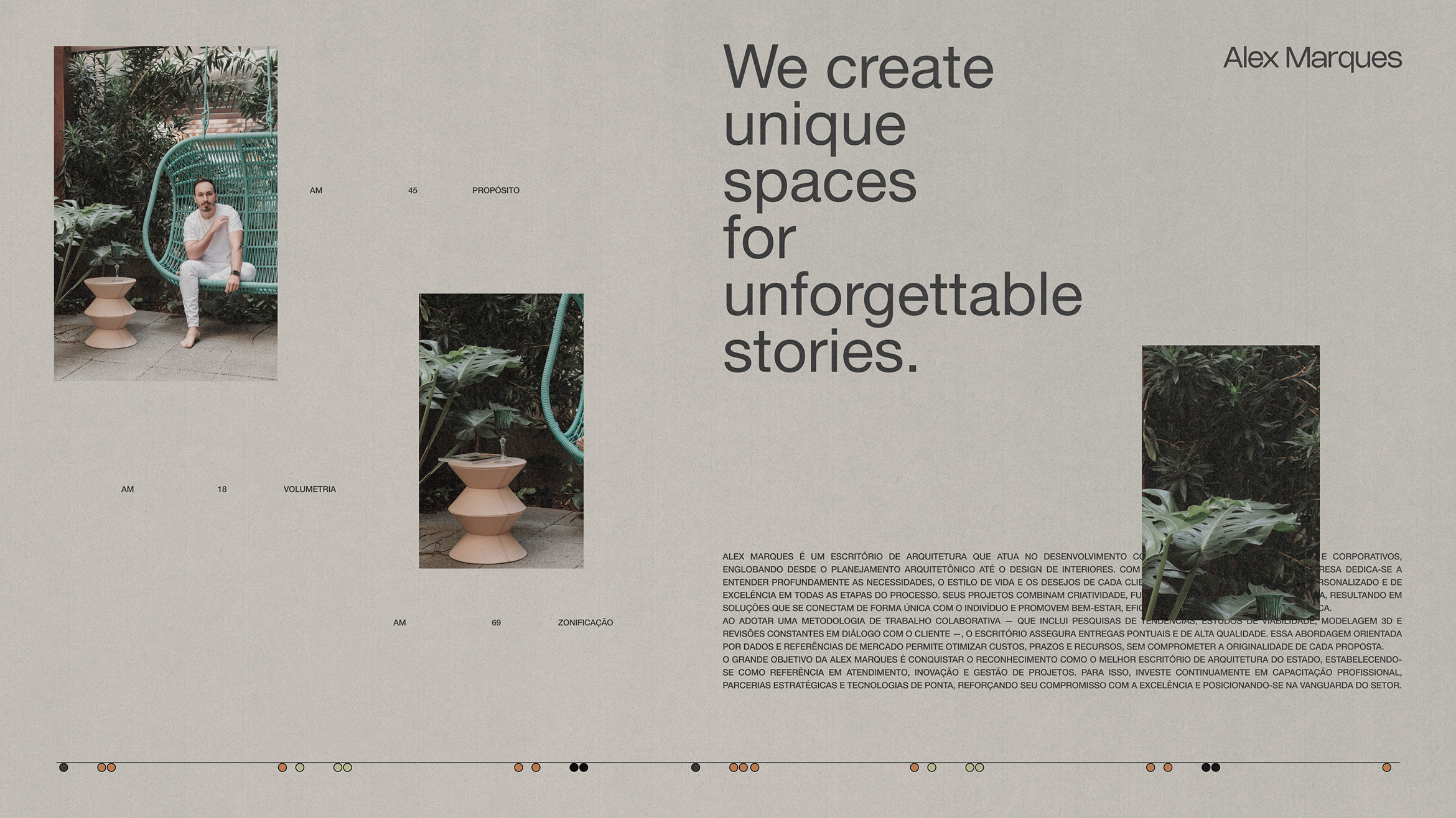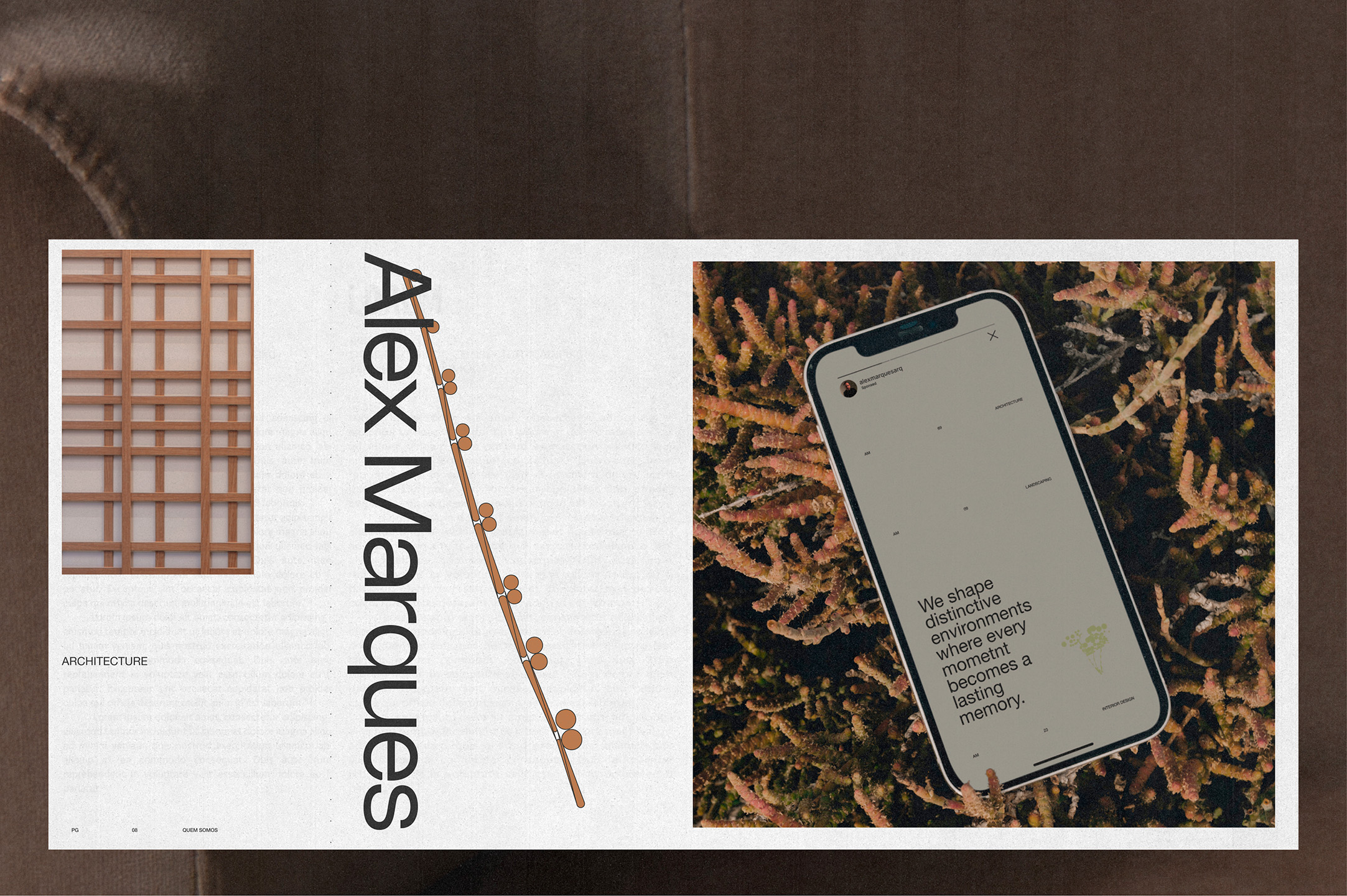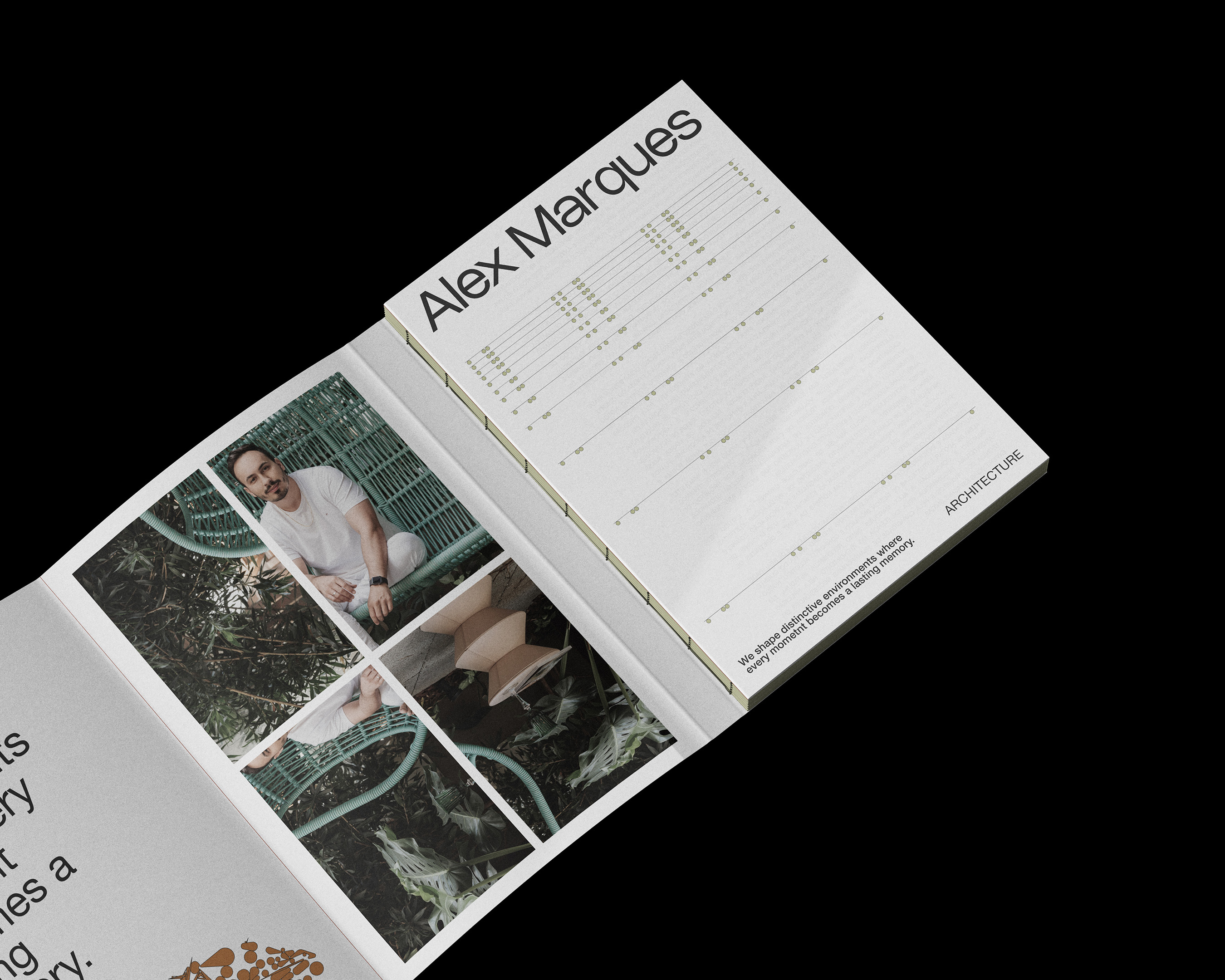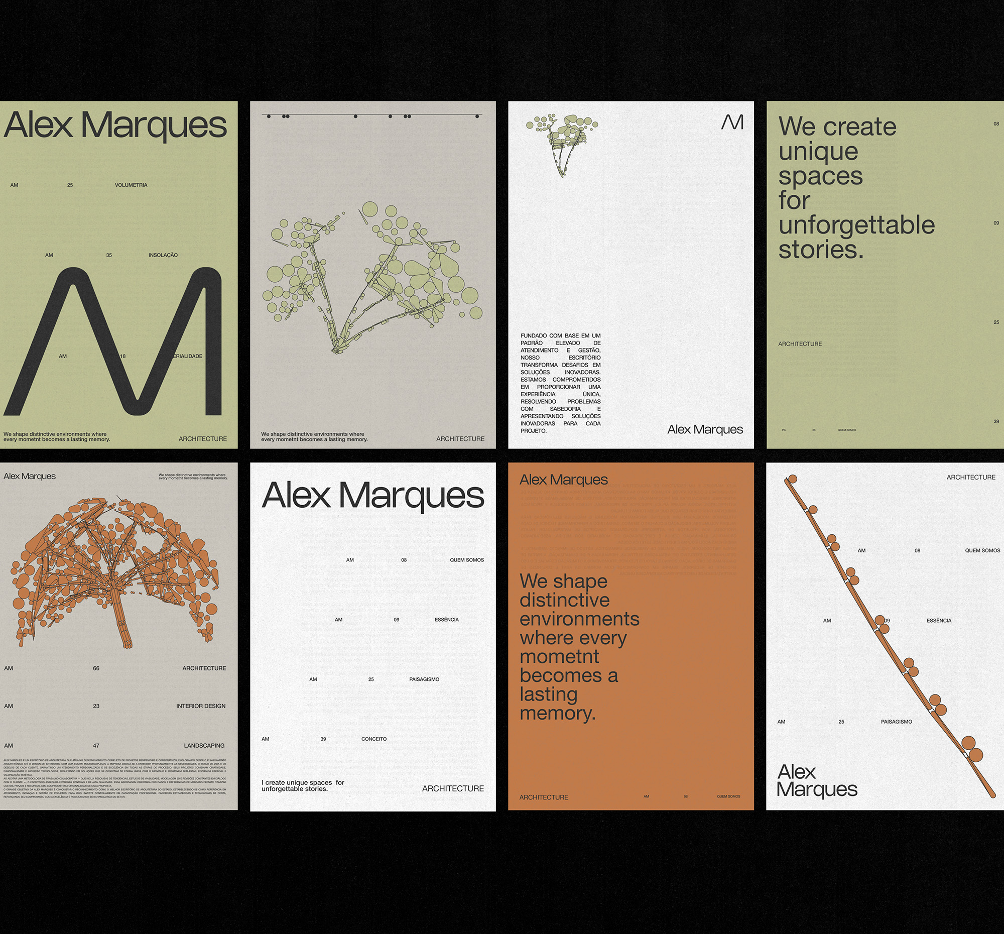 Votar neste projetoAlex Marques Arquitetura apresenta uma identidade que une ousadia e sofisticação. As ilustrações inspiradas no Guaimbe, reinterpretadas em traços orgânicos e gráficos, simbolizam vitalidade e conexão com a natureza. Em contraste, o design minimalista e a tipografia limpa trazem racionalidade e precisão. Essa dualidade cria um sistema visual único, elegante e disruptivo, que posiciona o estúdio como autoral e visionário, refletindo sua essência de transformar espaços em experiências marcantes.