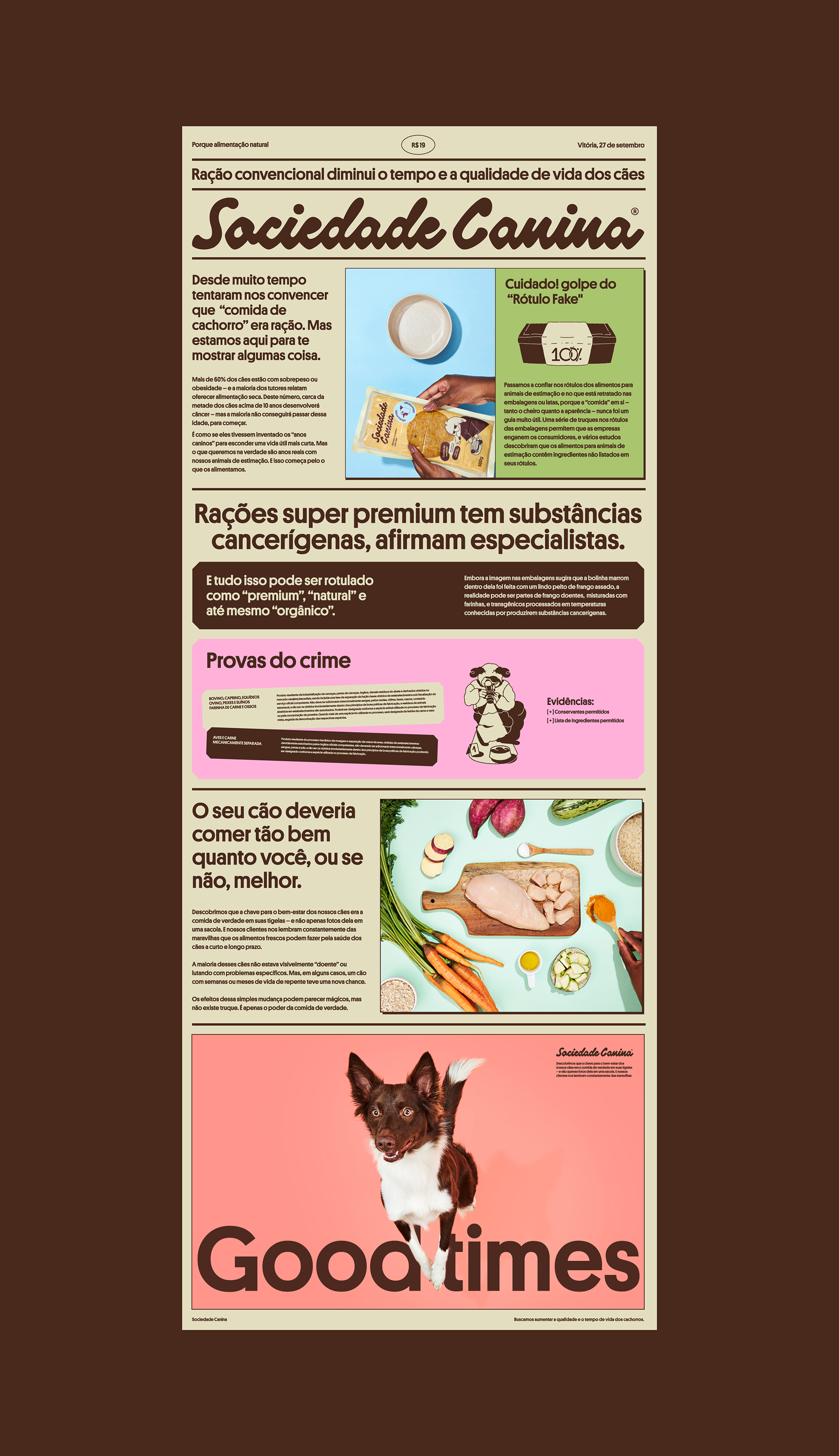 Votar neste projetoSeu cachorro deveria comer apenas comida de verdade. Sem segredos, sem conservantes, feita com ingredientes naturais e temperos de verdade. A Sociedade Canina nasceu desse propósito inquestionável, e nosso papel foi dar forma a essa visão através do design. Foi um daqueles trabalhos em que colocamos tudo o que temos: posicionamento, naming, identidade, UI & UX, ilustração, fotografia, animação, embalagens e produtos. O diferencial é que não criamos apenas uma marca, mas uma sociedade: um lugar de pertencimento, leveza e orgulho para quem cuida de cães. Com uma pitada de estranheza, buscamos surpreender em cada detalhe, misturamos tipografia sóbria com ilustrações enigmáticas, fotografia crua com narrativa divertida. O resultado é uma marca que foge da fórmula e respira autenticidade.