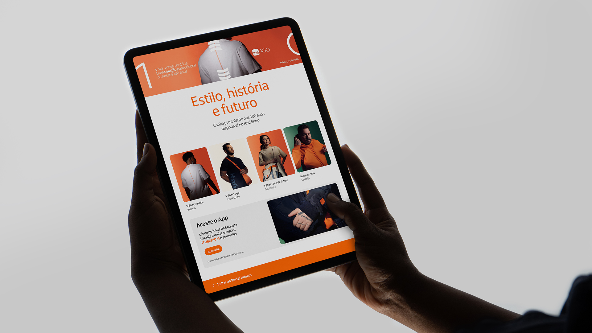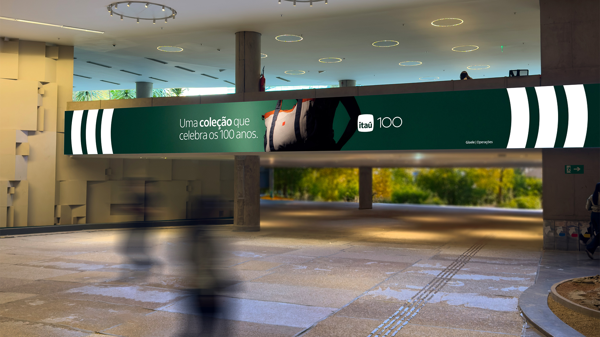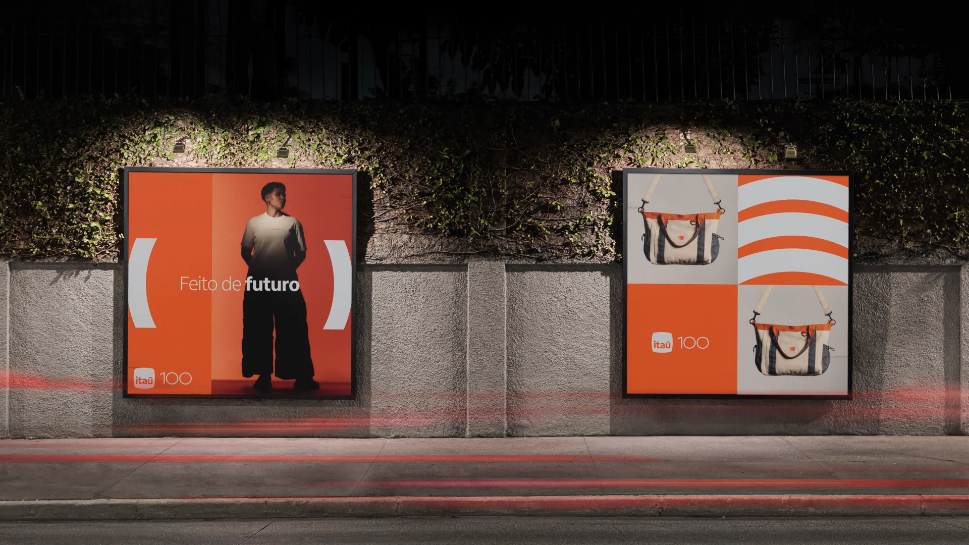 Votar neste projetoIdentidade visual criada para a coleção cápsula de moda que celebrou os 100 anos do Itaú. O ponto de partida foi o próprio número 100, em especial o zero, explorado como forma gráfica central. Esse zero se expande, se abre e se transforma em parêntese, elemento que enquadra, comenta e amplia a mensagem. A proposta extrapolou o papel e virou vestuário, criando uma linguagem gráfica com ritmo, precisão e presença. A coleção foi ativada dentro e fora do banco, conectando colaboradores, que se tornaram protagonistas ao vestir e dar corpo a esse sistema visual. O resultado é uma identidade comemorativa que reforça o posicionamento do Itaú como marca contemporânea e feita de futuro.