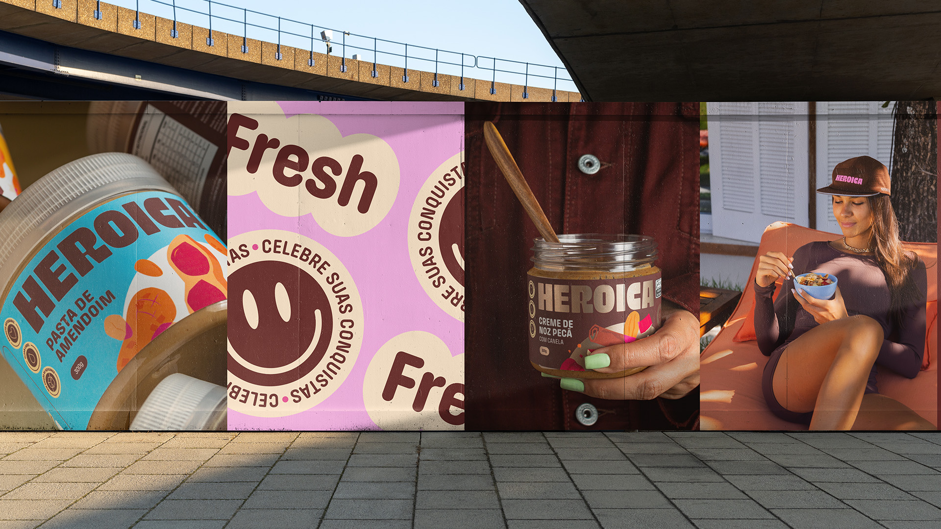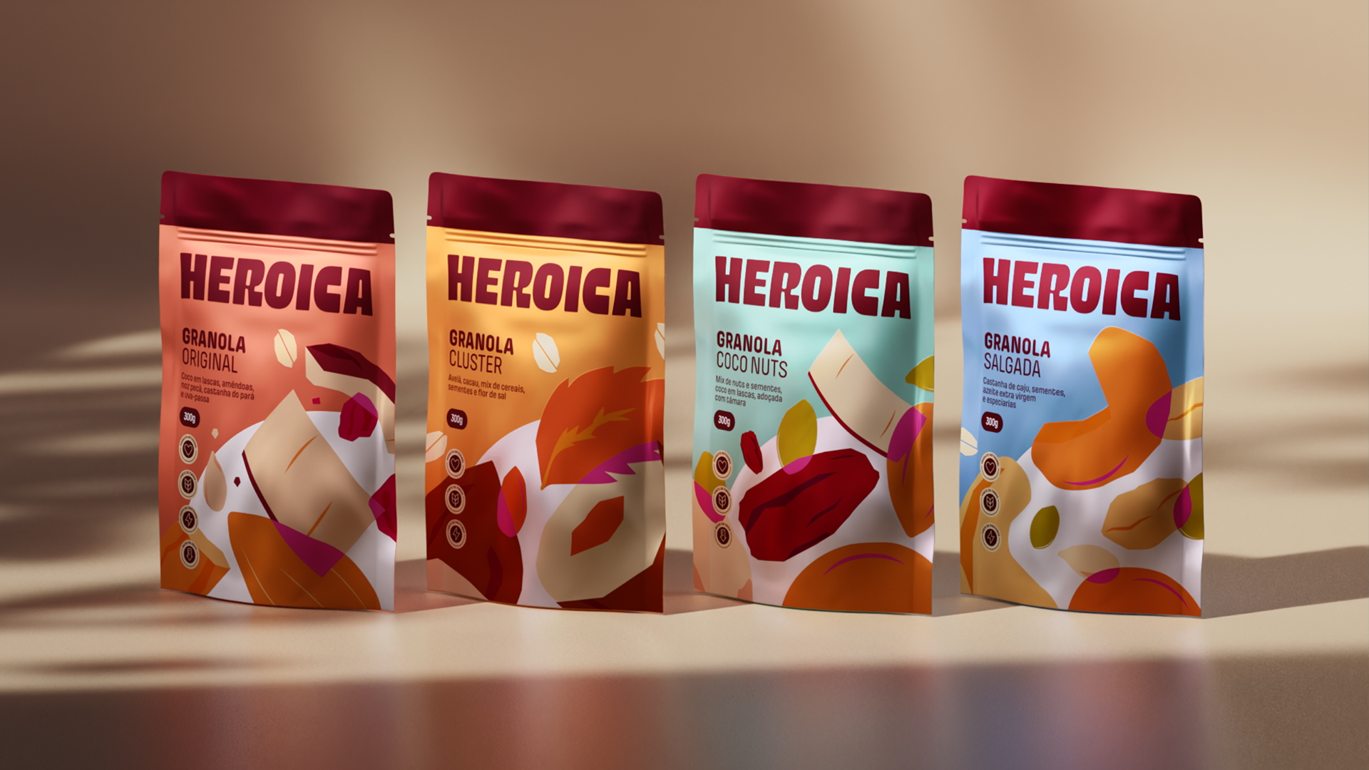 Votar neste projetoHeroica é uma marca de alimentos saudáveis que, após três anos no mercado, buscava uma nova identidade para sustentar sua expansão e refletir seu verdadeiro propósito. O projeto consistiu em criar um sistema visual coeso e memorável que traduzisse coragem, superação e autenticidade. A identidade une logotipo marcante, formas orgânicas, cores vibrantes e ilustrações dinâmicas, transmitindo acolhimento e energia. As embalagens foram desenvolvidas para gerar impacto no ponto de venda, com hierarquia clara das informações e diferenciação entre linhas premium e principal. O resultado é uma identidade que fortalece a marca, aumenta sua relevância no setor competitivo de alimentos saudáveis e cria conexão emocional com consumidores, destacando-se pela originalidade e consistência.