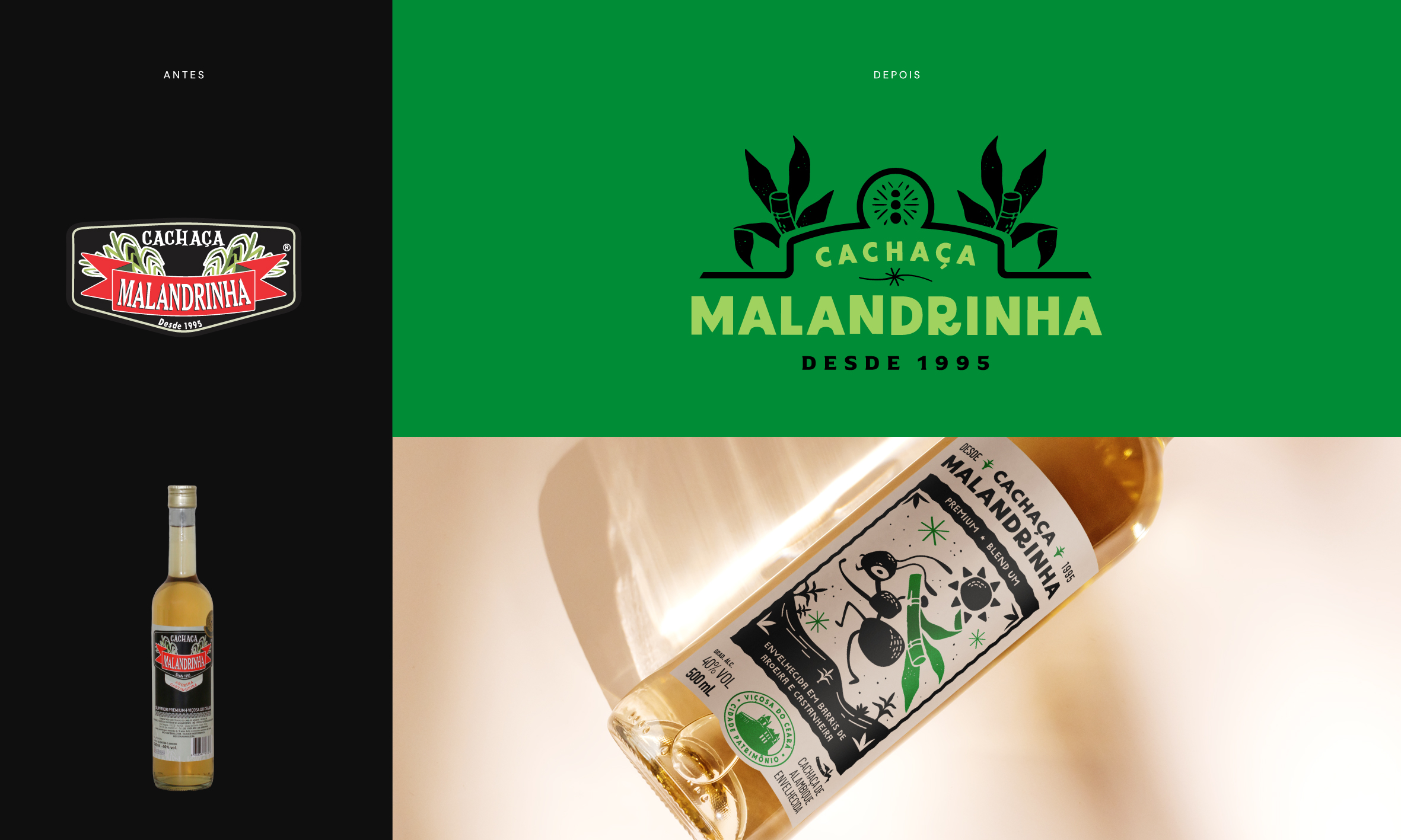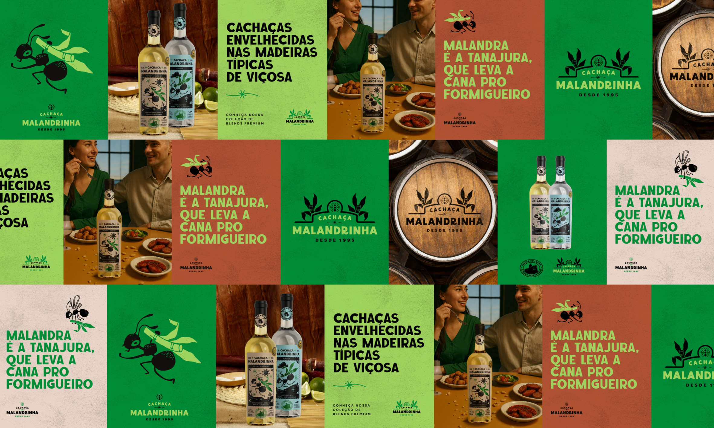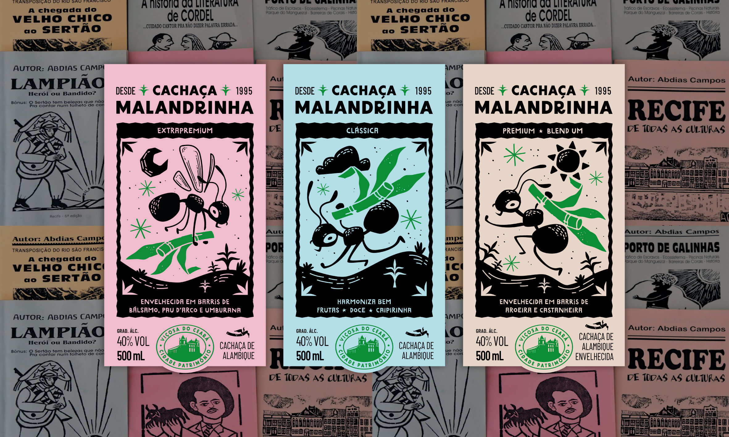 Votar neste projetoA Malandrinha é uma marca premiada e certificada de cachaça produzida artesanalmente desde 1995 em Viçosa do Ceará, local que carrega as origens da produção de cana no Brasil. Apesar do nome bastante expressivo, a empresa sentia dificuldade de se posicionar e para isso passou por um projeto de redesenho de marca que contemplou desde a criação de um storytelling e personagem, a criação de um sistema gráfico e o redesenho dos rótulos dos produtos. Para expressar o caráter popular, leve e divertido do nome, criamos a personagem Malandrinha, uma formiga da espécie Tanajura que é muito típica na região e incorpora os valores da marca, como conexão e proximidade com a cultura popular.