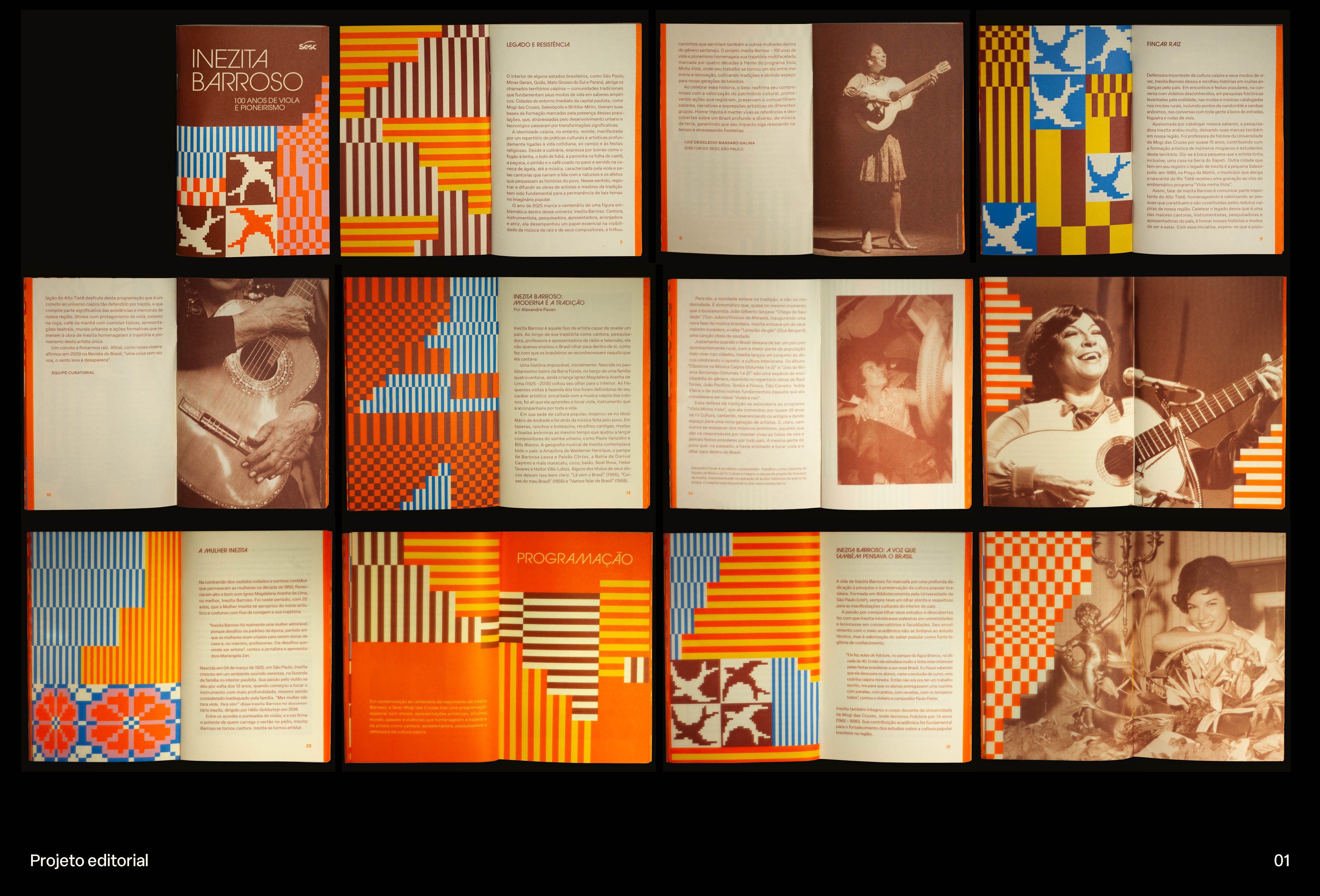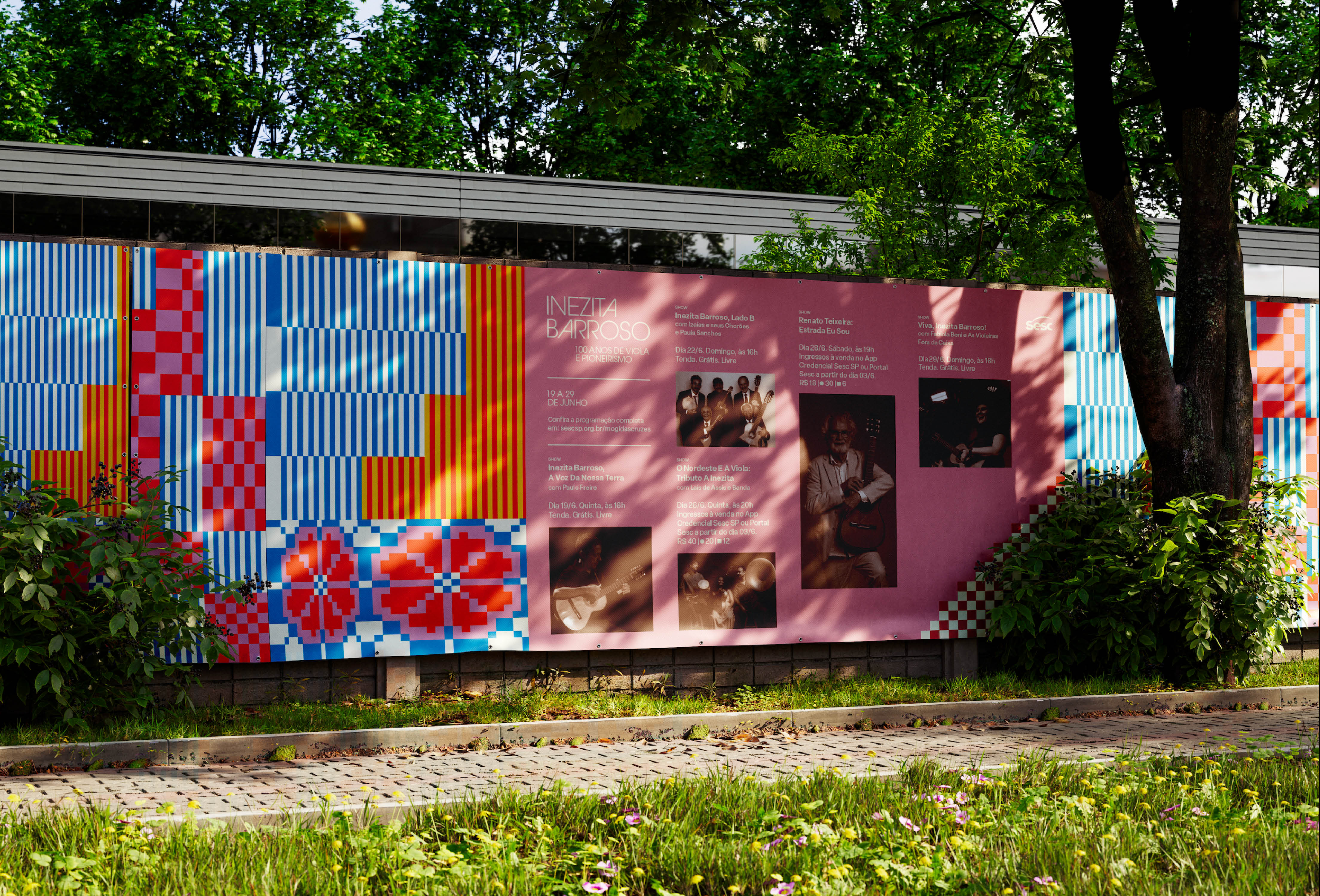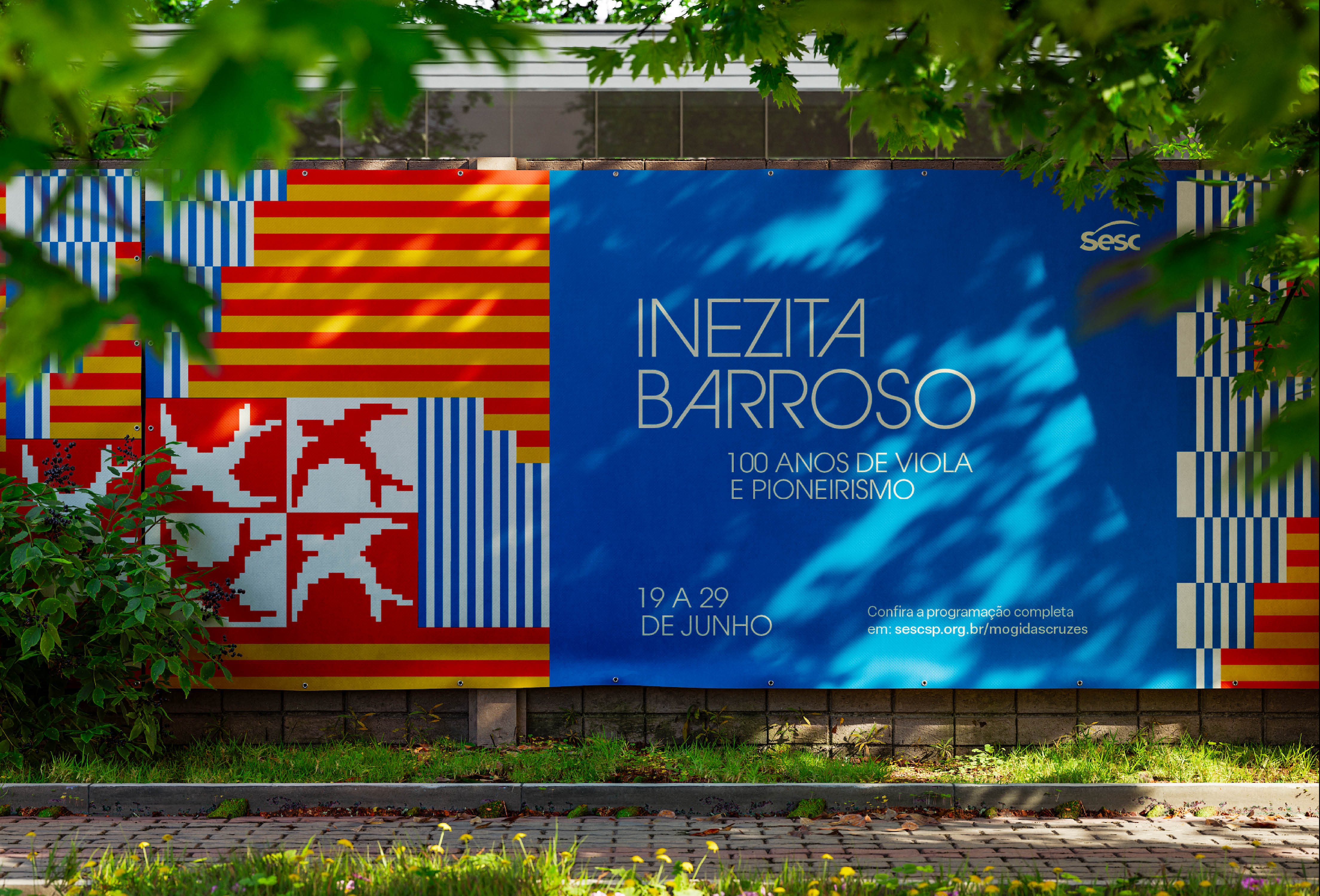 Votar neste projetoO projeto desenvolve a identidade visual da mostra “Inezita Barroso: 100 anos de viola e pioneirismo”, promovida pelo Sesc Mogi das Cruzes em celebração ao centenário da artista, que reuniu 15 atividades em sua homenagem. A proposta tem como eixo o conceito de “enraizamento”, inspirado em uma afirmação de Inezita à Revista Brasil em 1990: “Uma coisa sem raiz voa, o vento leva e desaparece”. Em suas apresentações e programas, como o "Viola, Minha Viola", foi notado que ela frequentemente utilizava vestidos floridos, saias rodadas, lenços e chapéus de palha, elementos típicos do vestuário tradicional do interior brasileiro. A identidade visual busca resgatar essa dimensão simbólica, centralizando o projeto gráfico na apropriação de estampas e bordados caipiras.