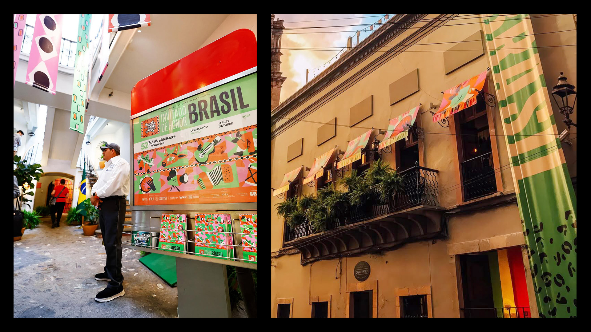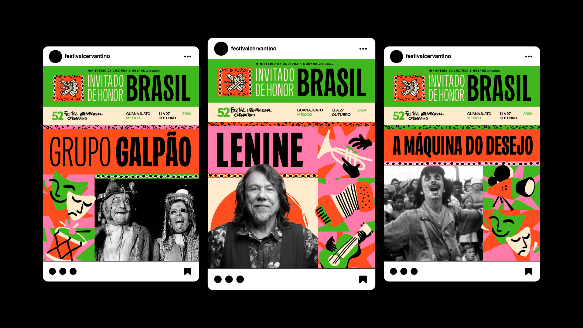 Votar neste projetoProjeto de identidade visual para o 52º Festival Internacional Cervantino (FIC), realizado em Guanajuato, México, tendo o Brasil como país convidado de honra em 2024. O festival, considerado o maior da América Latina, constrói a cada edição uma temática ligada ao país homenageado, com foco em questões globais e expressões artísticas atuais. A identidade visual usou paleta inspirada no Tropicalismo, traduzindo a diversidade cultural brasileira. Elementos feitos à mão — padrões, grafismos e ilustrações — basearam-se na cultura popular, na fauna e na flora para as manifestações artísticas, como teatro, música, cinema e dança. A tipografia Vinila, criada por uma designer brasileira, foi escolhida por sua família extensa de pesos, reforçando a presença do Brasil no evento.