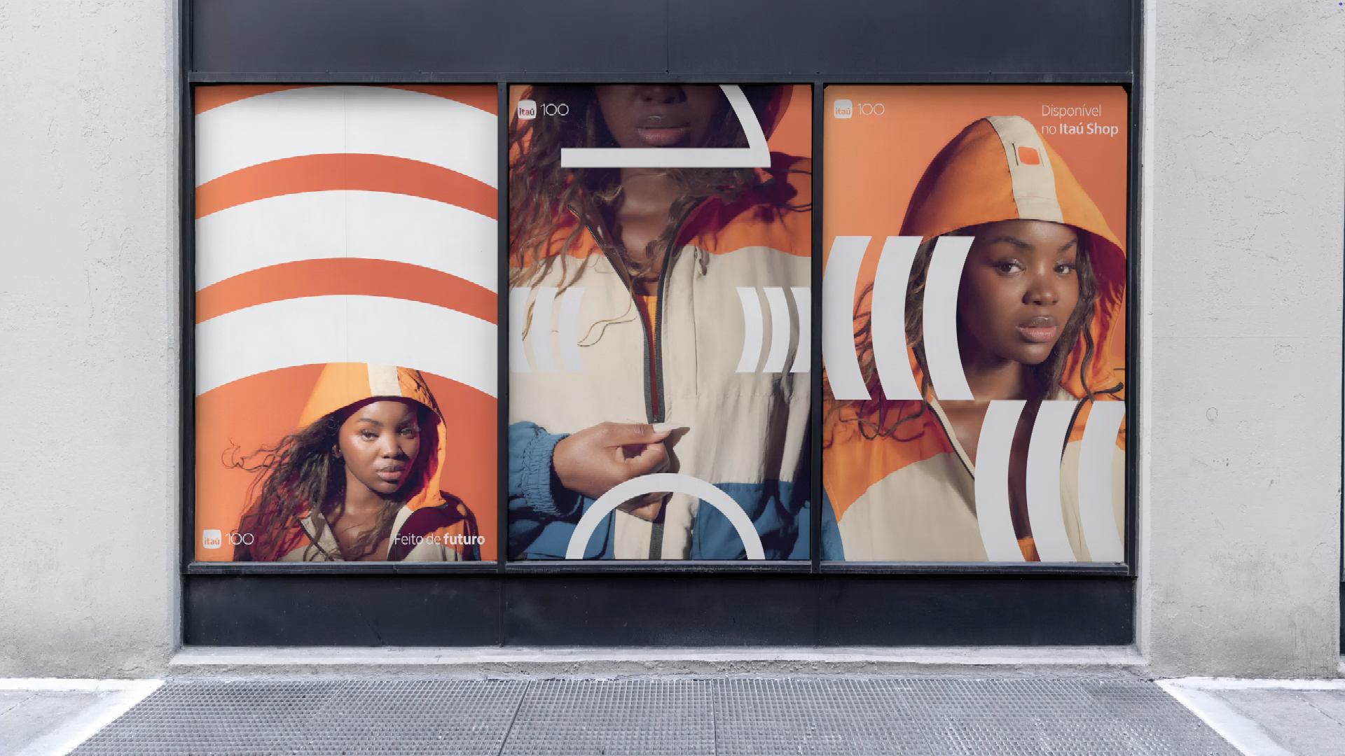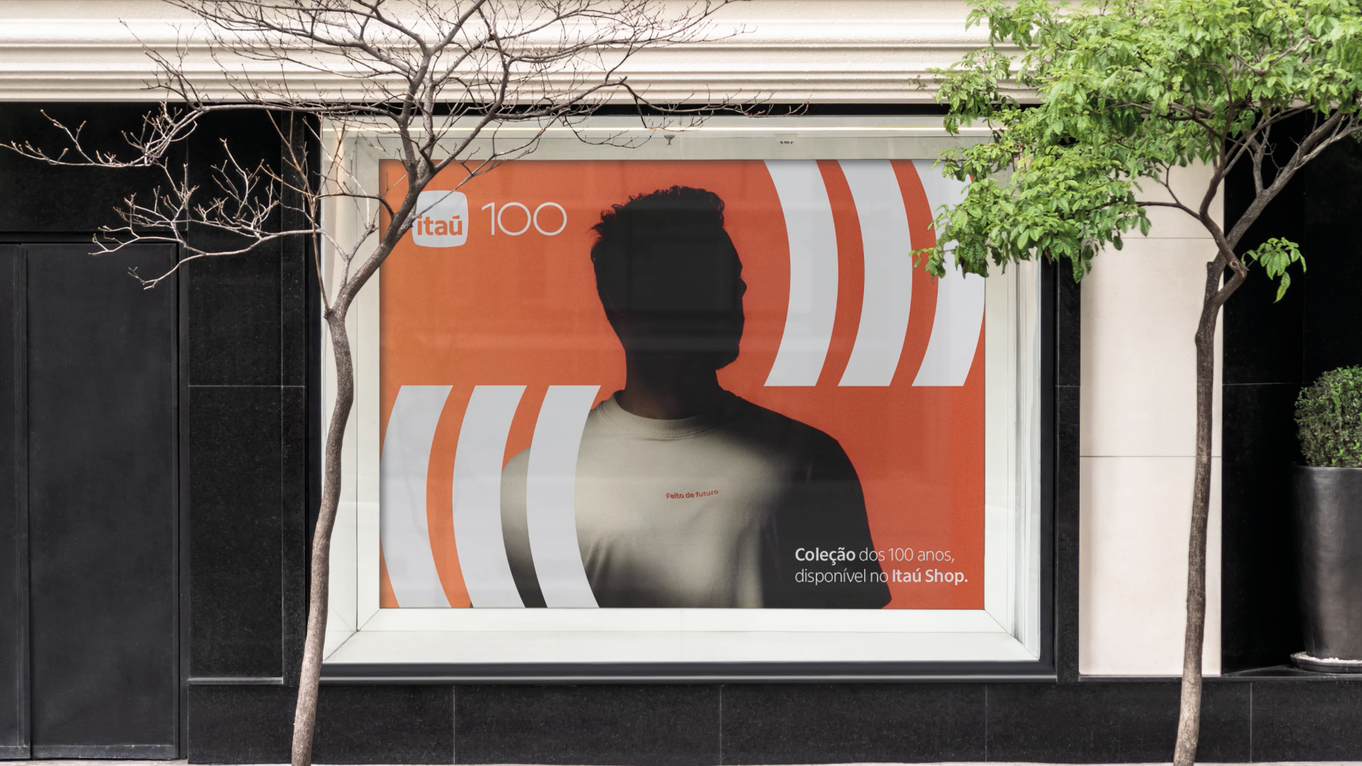 Votar neste projetoIdentidade visual criada para a coleção-cápsula de moda que celebrou os 100 anos do Itaú. O ponto de partida foi o próprio número 100, em especial o zero, explorado como forma gráfica central. Esse zero se expande, se abre e se transforma em parêntese, elemento que enquadra, comenta e amplia a mensagem. A ideia extrapolou o papel e virou vestuário, criando uma linguagem gráfica com ritmo, precisão e presença. A coleção foi ativada dentro e fora do banco, conectando colaboradores, que se tornaram protagonistas ao vestir e dar corpo a esse sistema visual. O resultado é uma identidade comemorativa que reforça o posicionamento do Itaú como marca contemporânea e feita de futuro.