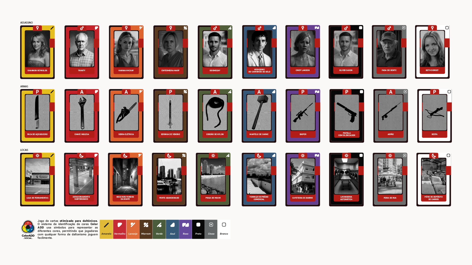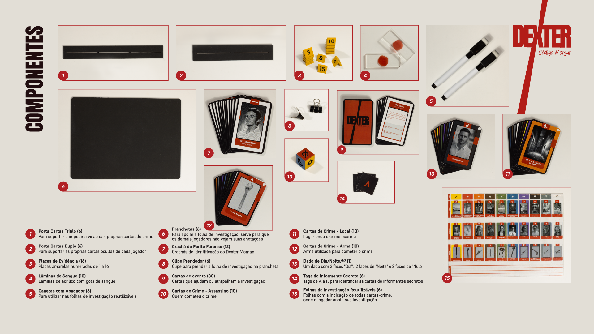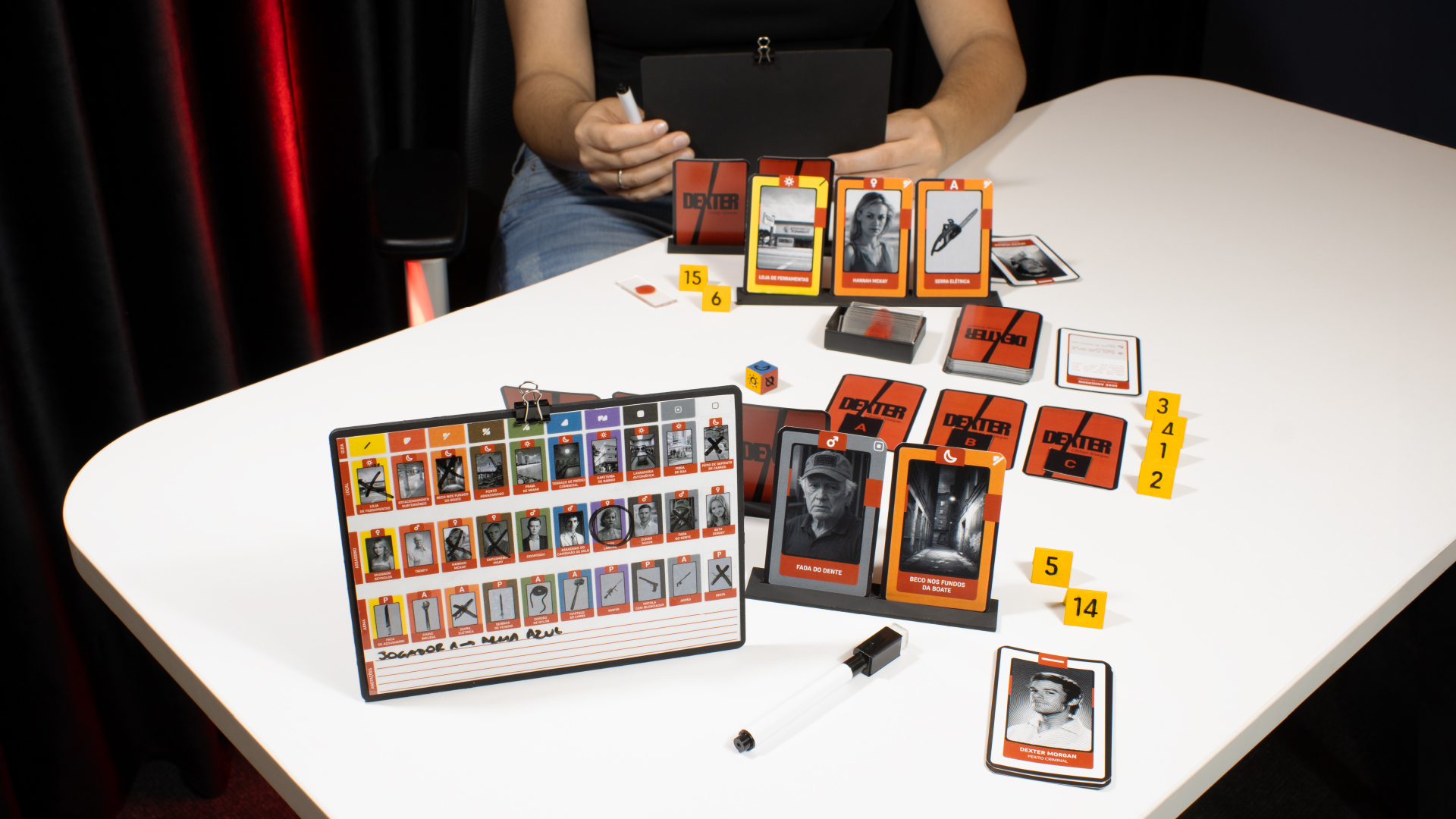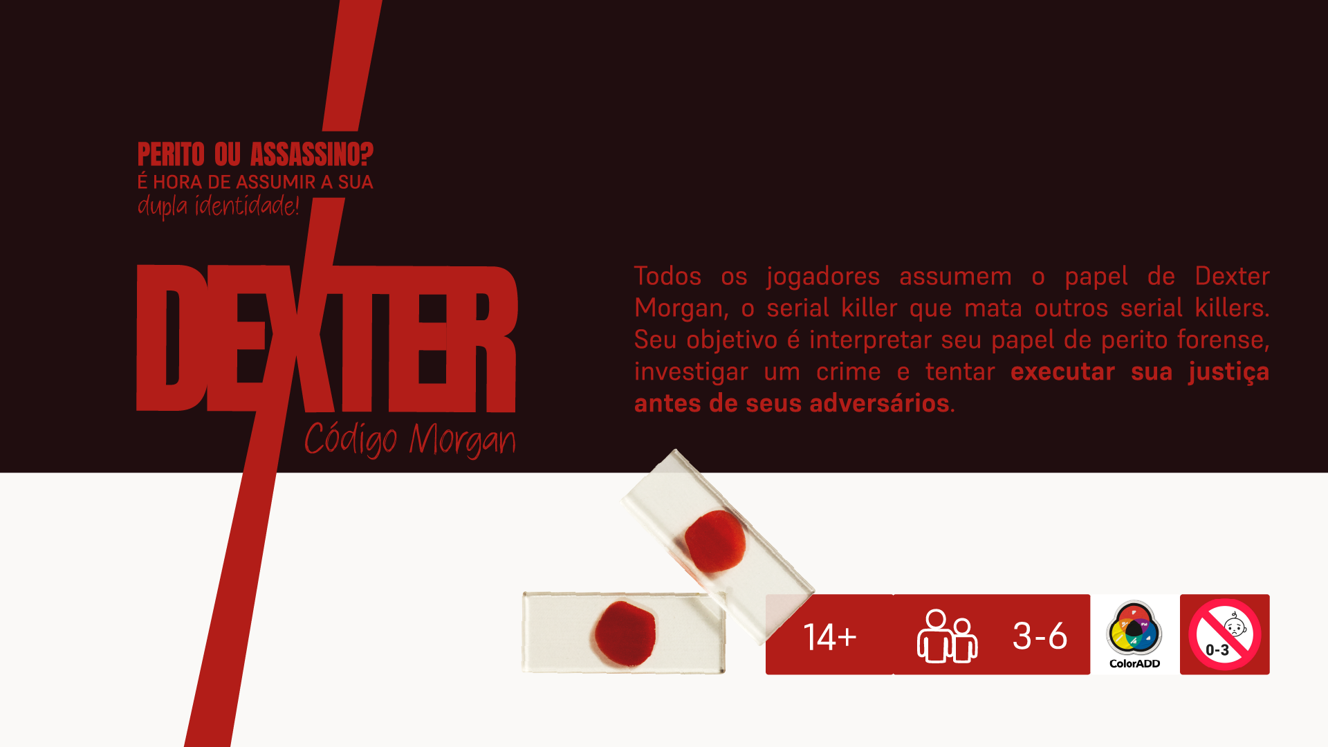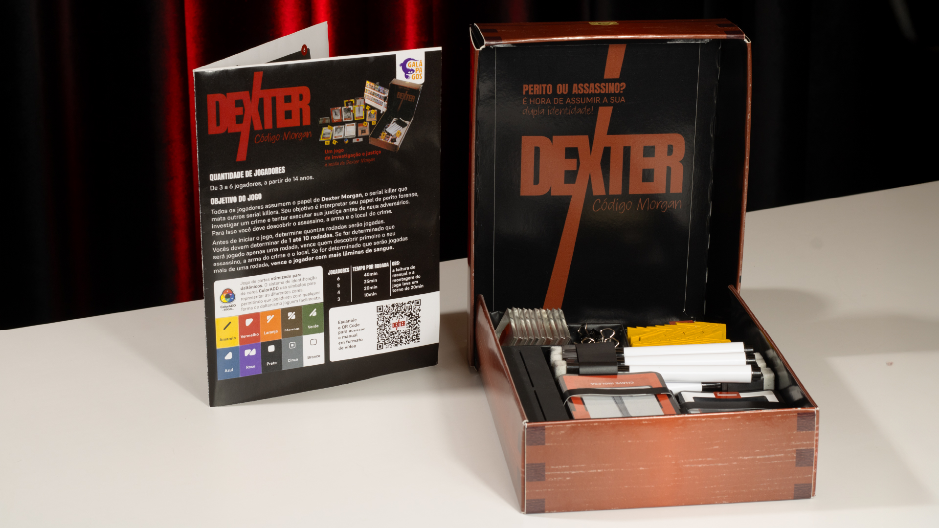 Votar neste projetoO projeto apresenta um jogo de cartas inspirado na série Dexter, que une investigação, mistério e diversão em uma dinâmica envolvente. Todos os jogadores assumem o papel de Dexter Morgan e precisam descobrir quem foi seu assassino, qual a arma utilizada e o local do crime. Ao solucionar o mistério, fazem justiça com as próprias mãos e conquistam uma lâmina de sangue, ícone da série. Desenvolvido desde a mecânica até componentes e embalagem, o jogo traduz a identidade sombria e intrigante de Dexter. Inclui ainda recursos de acessibilidade, como o sistema ColorADD, que garante participação inclusiva também para daltônicos.